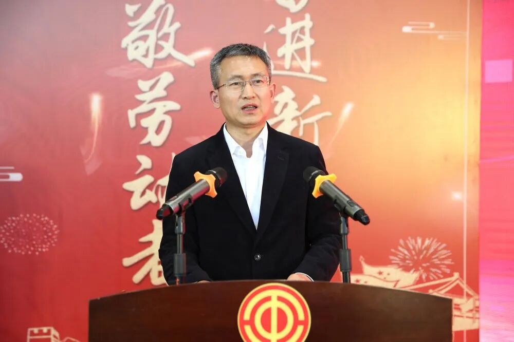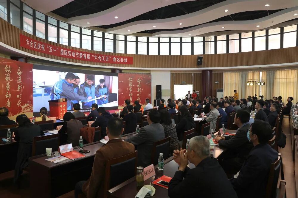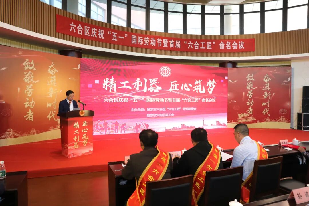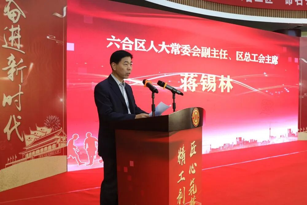 孟凡有在讲话时向全区广大职工致以节日的问候,向奋战在疫情防控一线的劳动者们致以崇高的敬意,向首届“六合工匠”以及受表扬的先进单位、先进个人表示祝贺。